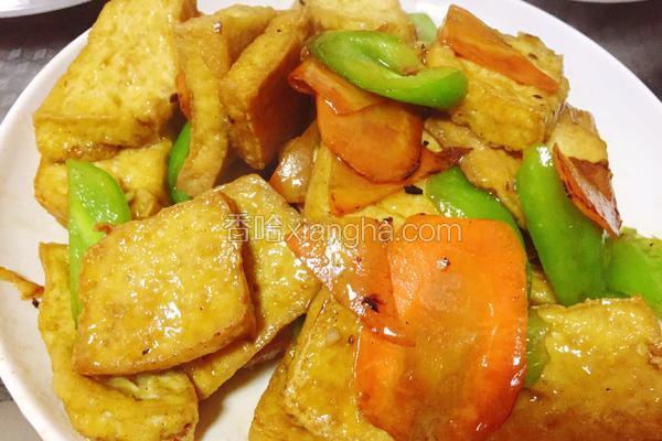4670浏览 / 17收藏 健康功效 豆腐:润燥 胡萝卜:活血化瘀 青椒:活血化瘀 食材用料 海鲜酱油 适量 溜豆腐的做法1.豆腐切片备用2.胡萝卜切薄片3.青椒切片4.蒜切碎5.锅内加油烧热,分几次下豆腐炸至金黄飘起6.炸好控油捞出7.碗里加少许淀粉,加水加适量酱油搅匀备用8.锅内加少许油下蒜末9.下胡萝卜片翻炒10.下青椒片翻炒11.下炸好的豆腐翻炒,将调好的淀粉汁倒入继续翻炒12.超好后盛出即可 本菜谱由上传...