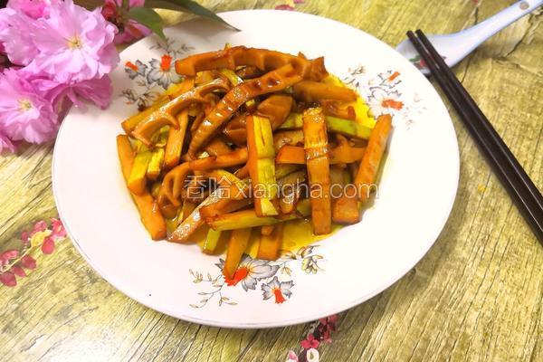 27103浏览 / 121收藏 健康功效 春笋:活血化瘀 食材用料 盐 3克 生抽 15g 油焖春笋的做法1.把春笋剥皮,洗干净2.锅中加水,水开放入春笋,中火烧煮3.大约2分钟,捞出春笋4.把春笋放入盘中,凉凉,备用5.凉凉的春笋,切成条6.热锅起油7.倒入春笋条8.翻炒均匀后,放盐9.再次翻炒均匀10.翻炒均匀的笋,关小火,煸炒出纹路11.然后倒入糖12.再倒入生抽13.转中火把糖,生抽翻炒均匀14.翻炒均匀后,大火收汁15.汤汁浓稠,盛盘上桌 本菜谱由上传...