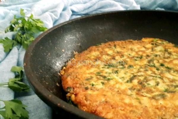 6234浏览 / 11收藏 健康功效 鸡蛋:润燥 胡椒粉:补血、护齿、保护骨骼 食材用料 欧芹或茴香 1把 盐 5克 欧芹烘蛋饼的做法1.欧芹洗净控干水分2.切小段备用3.鸡蛋打散4.蛋液倒入欧芹中5.加胡椒粉,盐拌匀6.锅烧热7.加入油烧热8.大火加入蛋液底部定型改小火慢慢煎制9.蛋液基本凝固翻勺,新手可借助盘子翻个略煎既成 本菜谱由上传...