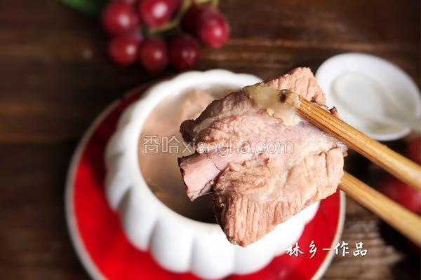 539015浏览 / 58收藏 健康功效 排骨:润燥 食材用料 红提 6个 盐 少许 葱花 少许 水果排骨汤的做法1.排骨洗净焯水2.捞出沥干水分,装入炖盅内3.红提加入盐和面粉,搓洗干净4.放入排骨中5.加入盐和适量清水6.放入蒸锅中,蒸1小时左右7.备好葱花8.出锅后夹出红提丢弃9.撒上葱花10.成品图 小贴士红提可以先打成汁,把汁水倒入排骨中一起炖。 本菜谱由上传...
