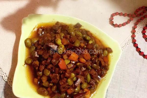 20111浏览 / 85收藏 健康功效 八角:理气、止痛、散寒 食材用料 毛豆米 300克 香干 120克 瘦肉丁 100克 鲜红辣椒 1个 盐 2克 生抽 2勺 老抽 1勺 姜末 8克 蒜瓣 3瓣 六月香豆瓣酱 3勺 清水 1碗 毛豆杂酱的做法1.首先准备好毛豆米,洗净2.瘦肉切细丁3.香干切细丁4.鲜红椒切丁5.六月香豆瓣酱6.干辣椒、八角7.姜末、蒜瓣,蒜瓣也要切成末8.油锅烧至七成热,首先放入八角与干辣椒9.再加入姜末,炸香10.再倒入肉丁,炒至变色11.加料酒,去腥12.这时,加入生抽13.老抽,炒至肉丁入味14.再倒入毛豆米,翻炒15.加香干,全部炒匀16.加上六月香豆瓣酱1...
