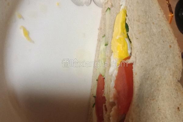 5075浏览 / 13收藏 健康功效 鸡蛋:润燥 黄瓜:活血化瘀 西红柿:活血化瘀 食材用料 全麦吐司 三片 小香肠 一个 盐 适量 早餐三明治的做法1.准备一个鸡蛋和小香肠,先将黄瓜和西红柿切成片,小香肠从中间切成两半2.锅内放油(热锅凉油),加盐(我可能手一抖盐放多了。。)3.打入一个鸡蛋,待鸡蛋煎好后装盘备用4.将半个香肠、鸡蛋放入全麦吐司上数第一层中(共两层)也可以加些黄瓜片和西红柿,将剩余的食材放入第二层中,这个可以自行选择5.最后一步啦!将全麦吐司按对角线切成两部分6.待切好后,美味的自制早餐三明治就做好啦,你还等什么呢,快来试试看吧,喜欢的话欢迎关注点赞嘻嘻7.再来一张,效...