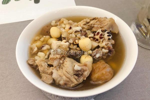22405浏览 / 68收藏 健康功效 排骨:润燥 莲子:养心安神 茯苓:活血化瘀 食材用料 炒薏米 15克 盐 7克 无花果四神汤的做法1.药材准备如下图。薏米炒一下再拿来煲汤,没那么寒冷。2.把所有的药材放水略洗,泡片刻备用。3.水开后放入排骨并倒入料酒,煮二分钟后捞起,再洗干净备用。4.把排骨,姜片,药材全部倒入炖盅里,炖一个半小时左右放盐即可。5.将汤盛出,即可食用。请喝汤吧 小贴士盐不用放太早。 本菜谱由上传...