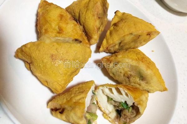 17296浏览 / 23收藏 健康功效 蒜苗:活血化瘀 食材用料 普宁黄豆腐 6块 瘦肉 200克 盐 4克 (皇牌)沙茶王 5克 生粉 30克 水 适量 普宁炸豆干的做法1.黄豆腐对半切开(豆腐内划一刀)2.瘦肉剁碎,蒜苗切碎3.沙茶王,盐,生粉(分开备用)4.将面粉和糯米粉放适量水 和成面糊(如下)5.和好面糊备好(涂豆干外面)6.将:肉碎.蒜苗.沙茶王.盐.生粉(搅拌均匀)7.拌匀(备用)8.取一块(备好)豆干将肉馅 塞进豆腐内(塞好如下)9.塞好的豆腐10.拿一块包好肉馅的豆腐 .把包陷的一面涂上面糊(可涂厚一点,防止油炸的时候露馅出来)涂好放入100度油炸11.炸至金黄色,出锅...