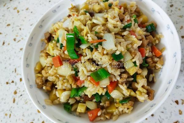 6466浏览 / 11收藏 健康功效 米饭:活血化瘀 食材用料 橄榄油,花生油,玉米油混合 一勺 抗糖化炒米饭的做法1.米饭提前准备,凉米饭,米粒搅拌均匀2.鸡胸肉,葱头,洋葱,sod花生芽,胡萝卜,鸡蛋,土豆,豆干洗净3.鸡胸肉切丁4.土豆,胡萝卜,Sod花生芽切丁5.葱头,洋葱切丁6.鸡蛋7.豆干8.放油,先炒鸡蛋,备用,肉下锅,炒出香味,加料酒,耗油,调料,加土豆,胡萝卜,花生芽,锅里小火闷3-5分钟,再放豆干,洋葱,米饭,最后放入葱花,加盐少许,味达美适量,出锅即可。9.配海带丝,餐前5分钟一块糖吧,抑制碳水化合物和蛋白质结合产生Ages导致细胞衰老10.色香味美营养齐全,而且抗...