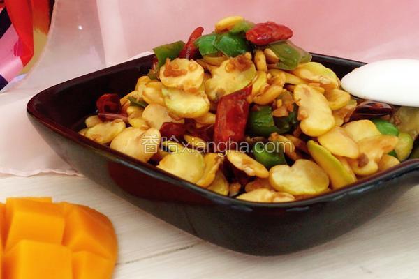 88561浏览 / 69收藏 健康功效 青椒:活血化瘀 食材用料 蚕豆米 150克 盐 1.5克 生抽 10毫克 蒜末 1瓣 姜末 7克 微辣蚕豆米的做法1.蚕豆米洗净、青椒切片2.姜切末、蒜瓣切末、干辣椒剪段3.油温烧至五成热下入姜末4.下入干辣椒,炸出它们的香味和辣味5.倒入蚕豆米,炒出香味6.加盐7.倒入生抽炒至入味8.添加蒜末,炒匀9.最后倒入青椒片,炒至断生即可装盘10.最后来张成品图 小贴士我追求口感,所以全程中小火没有加水,因为加水烧出的豆米太软烂,喜欢软烂的朋友可以添加少许清水 本菜谱由上传...