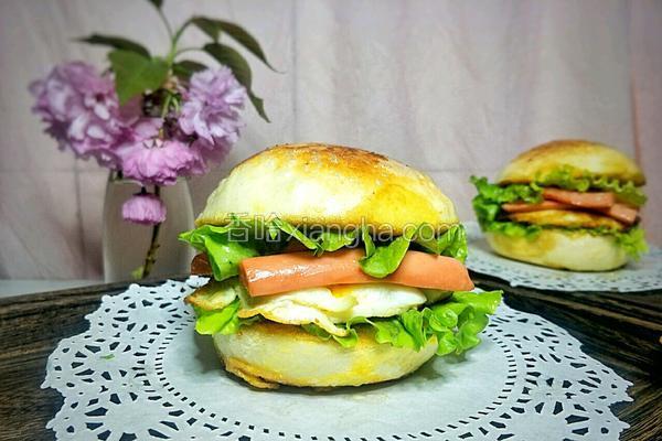 103944浏览 / 253收藏 健康功效 鸡蛋:润燥 生菜:活血化瘀 食材用料 火腿肠 2根 盐 1克 馒头(圆形) 2个 玉米油 适量 快手餐中式汉堡的做法1.准备食材2.馒头横切成两半3.火腿肠切段4.锅中倒少许油,开小火把火腿肠和两个鸡蛋煎熟,可根据自己口味撒适量盐和孜然粉。5.另外一个鸡蛋加盐打散,把馒头片裹一层蛋液6.同样倒少许油,开小火把馒头片两面煎至金黄色7.放一层馒头片一片生菜一个煎蛋8.放入火腿肠、生菜、顶部馒头片9.汉堡做好啦,开吃吧10.成品图 小贴士盐的用量根据自己口味添加。 还可以加入自己喜欢的其他食材和调料。 这是双人份,建议少做一次吃完噢。 本菜谱由上...