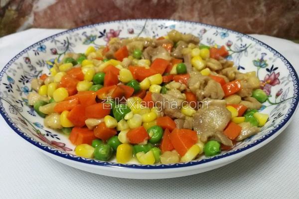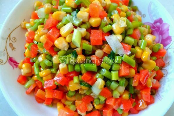 510056浏览 / 361收藏 健康功效 红萝卜:活血化瘀 食材用料 玉米粒 一罐 鸡精 少许 彩色玉米的做法1.葱切成葱花备用。2.玉米粒打开放在盘子里备用。没有玉米粒罐头,也可以煮玉米然后剥成一粒一粒的。3.红萝卜切成玉米粒大小的丁4.蒜苔切成玉米粒大小的小段5.锅里加水烧开,把切好的蒜苔、红萝卜丁放进热水里焯烫一到两分钟捞出,冲凉备用(冲凉可以让菜保持鲜亮的颜色,不易变色)6.锅里放少许油,放入葱花煸炒几下。7.放入步骤5的材料,放盐,味精,鸡精,糖(少许,也可以不放)煸炒两三分钟。8.淀粉加入少许水,勾到步骤7中,翻炒数下即可出锅。一盘美味可口的彩色玉米粒就做好了,既饱眼福,又...