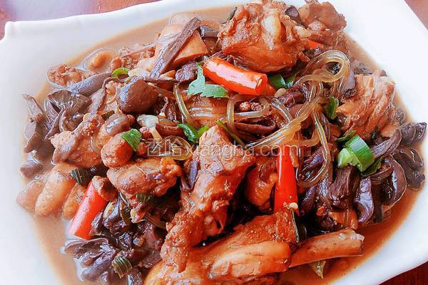 709892浏览 / 182收藏 健康功效 鸡腿:富含烟酸 白糖:活血化瘀 八角:理气、止痛、散寒 食材用料 干蘑菇 适量 粉条 适量 红尖椒 3个 生抽酱油 2勺 一品鲜酱油 1勺 老抽 1勺 香叶 3片 十里香 适量 鸡精 少量 干蘑菇炖鸡块的做法1.干蘑菇用温水泡发好。2.蘑菇洗净,去根泥,撕成小条,拧干水份备用。3.准备辅料,葱白切四断,葱叶切沫。红尖椒切两段。姜切6片,蒜切片。4.两只鸡腿,洗净。5.鸡腿切成块儿,洗净血水,控水。6.鸡腿中加入葱段、3片姜片、料酒、生抽、胡椒粉,抓拌匀,入味15分钟。7.粉条一把,泡温水软化。8.1炉灶开火,半锅水烧开,鸡块和喂制辅料一并入开水...