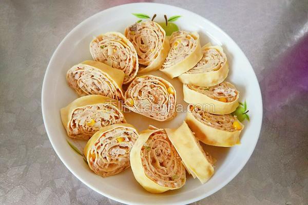 19247浏览 / 40收藏 健康功效 猪肉:润燥 香菇:活血化瘀 鸡蛋:润燥 食材用料 干豆腐(千张) 两张 玉米粒 适量 铁杆山药 半根 葱花 适量 蒜沫 适量 姜末 适量 盐 4g 十三香 适量 干豆腐(千张)肉末卷的做法1.猪肉肥瘦3:7剁碎,山药去皮蒸熟碾成泥,香菇焯水切小丁,除鸡蛋,香油,淀粉外所有材料混合拌匀,之后加香油,鸡蛋液,再用凉水和一勺淀粉,融化加入,使劲拌匀2.干豆腐皮冲洗干净,抹匀在豆腐皮上,可以薄一点,也可以厚一点3.卷起4.卷了两卷,猪肉馅大概就一碗,开水蒸20分钟即可5.晾凉切薄段,这个只切了一卷 小贴士里边的菜也可以换成别的 本菜谱由上传...