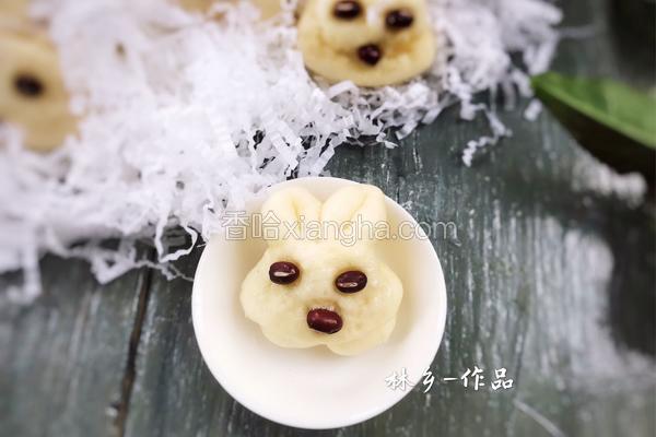 17312浏览 / 36收藏 食材用料 酵母 1克 温水 50克 小白兔馒头的做法1.温水中加入酵母,拌匀2.加入面粉,拌成絮状3.揉成光滑面团,密封发酵至两倍大4.洗净备好红豆5.把发酵好的面团,揉匀排气6.分成若干个小剂子7.搓成长条8.把两头弯下对齐9.向里上折起10.把中间两个面条捏一下11.再把外面两边捏进来,捏紧12.翻面,用筷子压出小白兔的耳朵13.用红豆做出小白兔的眼睛和嘴巴14.放入铺好纱布的蒸屉上,冷水上锅蒸15分钟即可15.成品图16.可爱的小白兔 小贴士喜欢吃包子的可以包上喜欢的馅料,面粉中的水量随各种面粉的含水量来定。 本菜谱由上传...