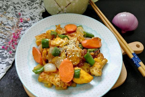 288901浏览 / 100收藏 健康功效 鸡蛋:润燥 胡萝卜:活血化瘀 青椒:活血化瘀 食材用料 生抽 适量 盐 少许 白芝麻 少许 小炒荷包蛋的做法1.胡萝卜切片青椒切成块状2.洋葱切成块状3.锅内放油烧热放入一个鸡蛋煎4.一面煎熟翻一面继续煎5.鸡蛋全部煎好切成方块状6.用剩下的底油将胡萝卜先煎一下7.然后加入荷包蛋和洋葱8.加入适量白糖、生抽少许盐调味即可9.最后加入青椒快速翻炒断生即可出锅10.一盘美味又快手的小炒荷包蛋就完成了 本菜谱由上传...