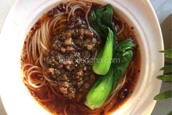 16717浏览 / 89收藏 健康功效 油菜:活血化瘀 食材用料 面条 适量 肉沫干豇豆 1碟 盐 1/3匙 鸡精 1匙 老抽 1/2匙 辣椒油 4匙 生抽 1匙 家常小面的做法1.将小油菜摘洗干净。2.准备一碟炒好的肉末干豇豆(具体方法可详见之前菜谱包子馅的制作方式)。3.锅内倒入适量水,大火烧开。4.水开后将大火调至中火,将面条放入锅内煮,将小油菜抄水一分钟左右即可捞出备用。5.将盐、味精、鸡精、生抽、老抽、蚝油放入碗内。6.碗内倒入辣椒油,搅拌均匀。7.然后倒入适量的面汤,继续搅拌一下。8.将面条捞出盛入碗内。9.将小油菜放在面上,进行装饰。10.然后将肉末干豇豆放在面上,即可食用...