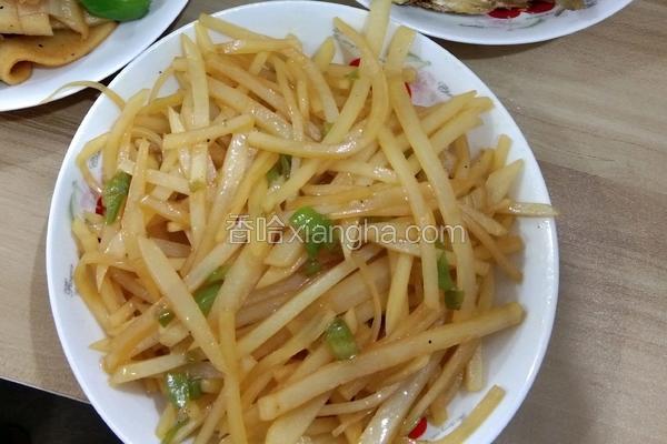 5168浏览 / 13收藏 健康功效 土豆:活血化瘀 食材用料 生抽 适量 盐 适量 家常土豆丝的做法1.土豆切丝2.浸水,水里倒入少许盐(防止变色)3.大蒜、辣椒洗净备好4.锅内烧油,倒入大蒜、辣椒翻炒一会儿,在倒入土豆丝翻炒。再倒入生抽、盐翻炒。盛盘 本菜谱由上传...