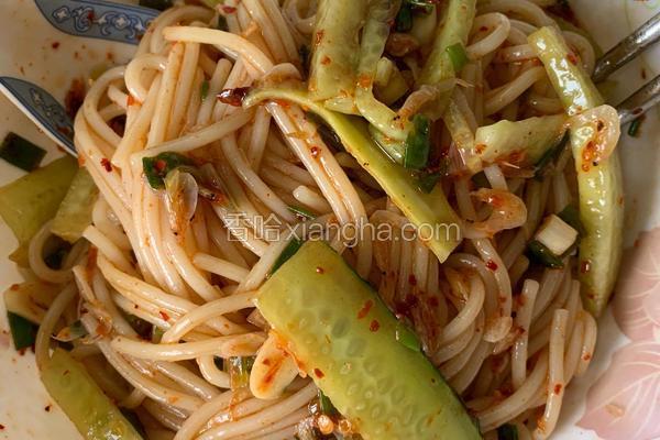 12546浏览 / 17收藏 健康功效 虾米:增强免疫力、抗氧化、护眼明目 黄瓜:活血化瘀 酱油:活血化瘀 食材用料 面条 适量 辣椒面 一勺 白醋/陈醋 一勺 盐 根据口味适量 夏日虾米凉拌面的做法1.烧水,烧到沸腾!2.下面,根据个人口感煮3~5分钟.3.煮熟捞出.4.泡凉水,以防面条黏在一起.5.把准备好的葱花和蒜按喜好切好备用,个人不太喜欢吃蒜所以放的比较少,这个可以根据喜好放多还是少.6.加入一勺辣椒.7.加入虾米,根据口味加点盐和味精.8.烧热油.9.把烧好的热油撒在备好的材料上.10.搅拌好后,倒一勺酱油.11.倒一勺白醋.12.倒点香油.13.把泡凉水的水倒掉,准备搅拌....