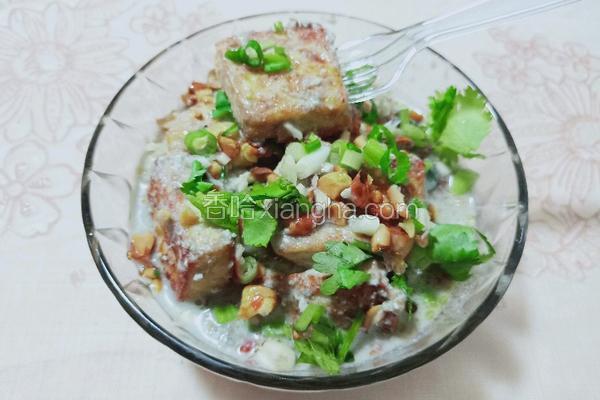 23074浏览 / 95收藏 食材用料 大豆腐 半块 臭豆腐 2块 花生碎 2匙 色拉油 适量 小香葱 适量 麻将 2匙 蒜末 适量 熟芝麻 适量 夜市版油炸臭豆腐的做法1.豆腐改刀,切成腐乳块大小备用2.将臭豆腐用匙搅拌至化开,把调好的麻酱倒入臭豆腐汁碗里备用3.把葱、蒜、香菜切成末备用4.油温7成热,将豆腐炸至外表金黄夹出,放入碗内5.将调制好的臭豆腐麻酱汁倒入炸好的豆腐碗中,撒上准备好的葱、蒜、花生碎、熟芝麻、香菜6.一份美味的夜市臭豆腐就做好了,干净卫生,还特别好吃。喜欢吗?喜欢给我点个关注吧! 小贴士1.我用的是石膏点的豆腐,不易碎2.喜欢辣的可以放点小米辣 本菜谱由上传...
