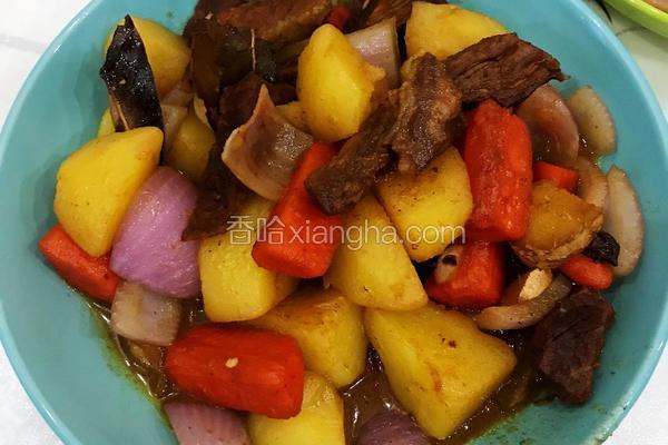 11074浏览 / 23收藏 健康功效 土豆:活血化瘀 牛肉:补脾胃、强筋骨、益气血 胡萝卜:活血化瘀 食材用料 干辣椒、孜然粉 料酒或者酒 等 土豆牛肉的做法1.牛肉先下水煮,去血水2.切好洋葱、土豆3.切好洋葱、土豆,喜欢吃香菜的朋友可以准备点香菜4.先放油把生姜、八角等炸香,再放牛肉5.牛肉烧熟后放盐、冰糖,再放土豆、猪油6.土豆煮熟后,放如洋葱炒熟,适当加点水、放入孜然粉,装盘 本菜谱由上传...