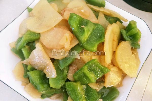 20945浏览 / 105收藏 健康功效 土豆:活血化瘀 酱油:活血化瘀 食材用料 大辣椒 2个 盐 一勺 五香粉 一勺 鸡精 一勺 土豆辣椒的做法1.土豆洗干净切片备用2.大辣椒洗干净备用(最好用手撕开)3.大蒜切成片备用4.起锅烧油,放入蒜片5.放入土豆片煸炒6.加入酱油翻炒7.加入大辣椒8.加入盐9.加入五香粉10.加入鸡精11.大火翻炒后加入适量清水12.转中小火焖煮2~3分钟,待汤汁熬尽出锅 本菜谱由上传...