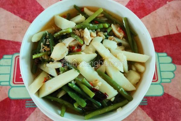 10055浏览 / 13收藏 健康功效 土豆:活血化瘀 豆角:活血化瘀 食材用料 花椒颗粒 数粒 蒜瓣 4瓣 姜片 3片 肉臊子 少许 盐 少许 生抽 少许 肉沫 少许 土豆豆角一锅烩的做法1.小土豆,取三个,洗净备用2.土豆切条,过水3.豆角,先洗净,摘去带把的梗,可以掐头去尾。 将豆角不切,用手掐一半,豆角长度基本一致。4.锅中加油,陆续加花椒,蒜瓣,姜片,辣椒,葱花……放入土豆翻炒5.渐变色,加入豆角焖,加水,盖上锅盖。6.瞧瞧:土豆焖豆角,黄的黄,绿的绿……7.出锅了,这可是一盘家常土豆快儿配豆角。 加入少许肉臊子,提个味儿即可。 下班回来开始烹饪,不大好看,但的确是家常菜谱,吃...