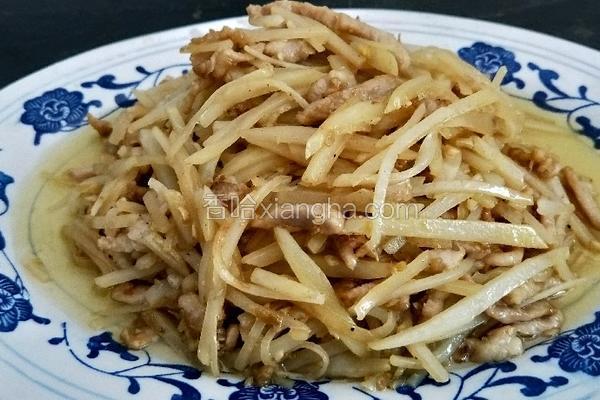 17686浏览 / 55收藏 健康功效 土豆:活血化瘀 食材用料 里脊肉 300g 盐 8克 水豆粉 适量 生抽 10g 土豆肉丝的做法1.土豆洗静去皮切片在切大小均匀的丝,切完后用水泡一泡,2.里脊肉切丝码低味加水,盐,料酒,生抽,水豆粉,3.姜蒜切末4.这是做好的准备食材5.锅烧热加色拉油滑锅到出在加色拉油稍微多加点油温烧至6成热下入肉丝等肉丝发白后放入土豆丝过一会捞出,控油,6.锅中剩一点油加姜蒜爆香,油不要太多7.爆香下锅翻炒均匀,放鸡精味精加点盐生抽,即可出锅 本菜谱由上传...