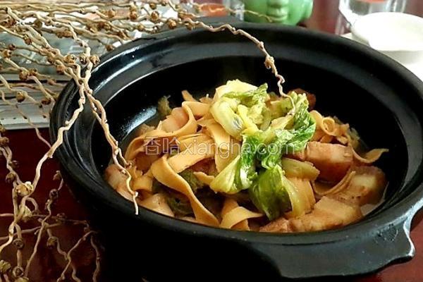 23585浏览 / 70收藏 健康功效 五花肉:润燥 花椒:补血、护齿、保护骨骼 食材用料 干豆腐 半张 白菜叶 300克 生抽 10克 盐 2克 鸡粉 5克 五花肉白菜干豆腐煲的做法1.白菜洗净撕成块,葱切粒,肉切片,干豆腐切条2.锅烧热入油烧热下入肉煸香3.加入葱,花椒煸香4.下入白菜干豆腐翻炒5.加入蚝油,生抽6.加入清水,鸡粉,盐烧开7.入砂锅炖煮至10分钟左右,汤汁收到自己喜好的稠度即可。我喜欢汤汁少一些,味道更浓郁 本菜谱由上传...