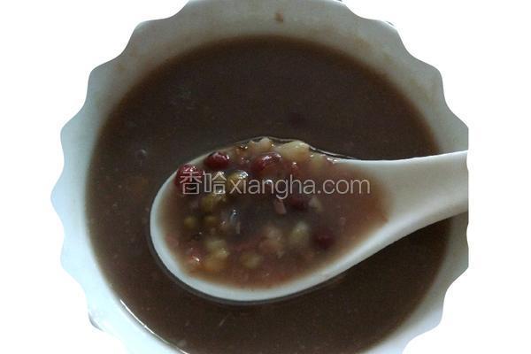 12419浏览 / 11收藏 健康功效 红豆:理气 绿豆:清热、解毒、抗氧化 小麦:增强免疫力、护眼明目、维持上皮组织健全 食材用料 片糖 适量 水 适量 什锦糖水的做法1.先洗干净三豆(红、绿、大)泡两到三小时2.杂粮类洗干净待用3.泡好的三豆先加适量的水煮开4.煮开了加入杂粮中火煲稠为止。(小心喷出水来)看好火5.开始变稠的时候小火慢煲,可以加入片糖。(这种糖水要二小时以上三小时以下煲好)6.呵呵!可以吃了。 本菜谱由上传...