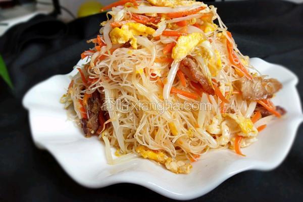 412507浏览 / 810收藏 健康功效 米粉:活血化瘀 鸡蛋:润燥 胡萝卜:活血化瘀 食材用料 豆芽 适量 沙茶酱 一勺 盐 适量 什锦炒米粉的做法1.猪肉切好,备用2.豆芽胡萝卜备好3.米粉用温水泡20分钟4.热锅放油,下鸡蛋液,翻炒,熟后盛出5. 热锅下油,放入肉,再放入沙茶酱翻炒,6.把胡萝卜和豆芽倒入翻炒。7.再把炒好的鸡蛋放进去。8.再放入泡好的米粉,翻炒均匀。9.一盘美味的米粉就好了。 小贴士米粉不要泡的太久,或者水太热,米粉容易泡烂。 本菜谱由上传...
