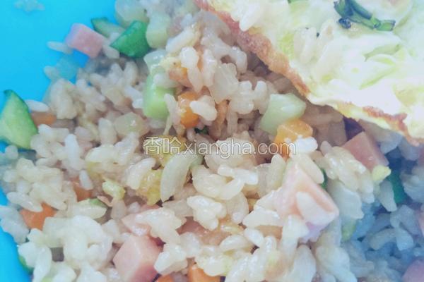 5578浏览 / 8收藏 健康功效 猪油:抗氧化、抗癌防癌、促进生育 食材用料 大米饭 1碗 海鲜酱油 适量 五彩蛋炒饭的做法1.猪油备用2.胡萝卜切丁备用3.黄瓜切丁备用4.圆葱切丁备用5.火腿切丁备用6.热锅下入猪油7.鸡蛋打散,煎好铲碎块8.下入胡萝卜丁、火腿丁、少量圆葱丁翻炒9.在下入米饭翻炒,然后下入圆葱丁和胡萝卜丁10.加入海鲜酱油翻炒均匀出锅11.又香又滑又脆的蛋炒饭就做好了 小贴士猪油炒饭味道滑嫩适口,胡萝卜、黄瓜脆中带着清香,在配上海鲜酱油特别好吃。鸡蛋炒饭有蛋有饭还有青菜和火腿,营养丰富,味道鲜美。 本菜谱由上传...