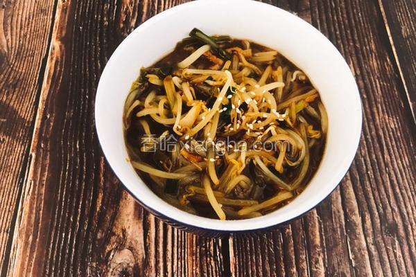 7159浏览 / 7收藏 健康功效 五花肉:润燥 食材用料 豆芽 300g 盐 2勺 生抽 2勺 老抽 1勺 鸡精 1勺 五花肉炒豆芽的做法1.准备食材2.葱部分切段,部分葱花,蒜切末,五花肉切条3.热锅冷油,炒香蒜末葱段4.下五花肉翻炒,加料酒和醋炒香5.下豆芽,倒半碗水翻炒6.加入生抽,老抽,酱油,糖,盐,香油,鸡精调味7.撒葱花略微翻炒8.装盘撒芝麻即可 本菜谱由上传...