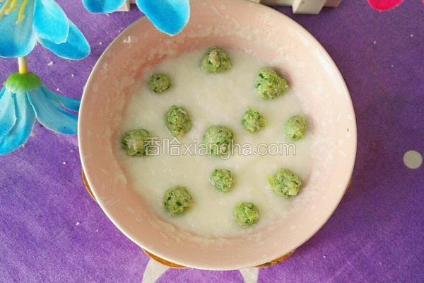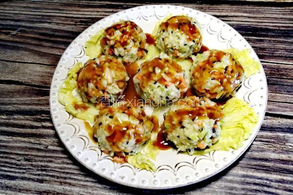 29391浏览 / 186收藏 健康功效 米饭:活血化瘀 食材用料 盐 1/2茶匙 白胡椒粉 适量 味极鲜 1汤匙 水 1勺 饭团子的做法1.准备材料,花生米可以准备五香花生米或者生花生米,用锅炒熟。2.将米饭放入一个大碗中搅散备用,这样一会更易于搅拌均匀3.胡萝卜,葱花,西兰花,切碎备用。4.花生米,芝麻,用平底锅小火炒熟备用。我用的熟芝麻和五香花生米。5.将鸡蛋,蔬菜碎,花生米,芝麻倒入米饭的碗中搅拌均匀6.搅拌均匀的米饭。7.放入盐,胡椒粉,继续搅拌均。8.然后放入适量的糯米粉搅拌均匀。9.糯米粉要一边放一边搅拌,大米有了粘性即可。10.盘子里铺菜叶,美观也更可口11.用手将米饭团...