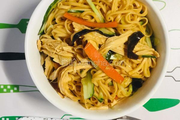 7241浏览 / 10收藏 健康功效 腐竹:抗氧化、抗癌防癌、促进生育 木耳:止血、养血 胡萝卜:活血化瘀 食材用料 青瓜 半根 盐 10克 飘香拌面的做法1.准备好图下的食材 。切成丝~哈哈 刀工不要 ,不要介意哈!2.蒜 也要拿来切碎哦,爆炒一下。3.所有的食材爆炒一下,记得放盐噢!嘻嘻,然后拍照,就是为了好看一些,不对,既好看又好吃!4.哈哈,成品图来啦!记得拌匀一下噢, 小贴士配菜全都爆炒一下,小心别被油溅起烫到噢爆炒记得放油盐酱油和醋。挂面煮水,煮开后,捞出到盘子里。碗里放酱油, 本菜谱由上传...