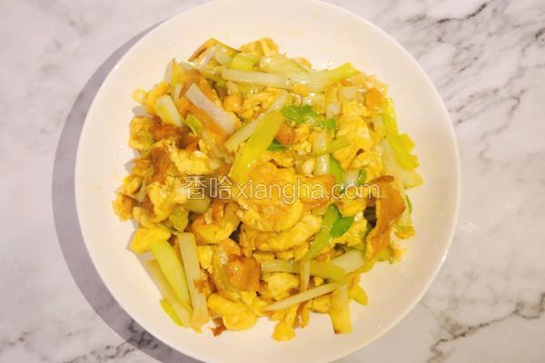 252803浏览 / 1396收藏 健康功效 韭黄:活血化瘀 鸡蛋:润燥 食材用料 盐 适量 韭黄炒蛋的做法1.准备食材,韭黄、鸡蛋、蒜2.韭黄洗净切段,放入盘中待用3.加入适量盐,把鸡蛋打散,搅拌均匀4.油温八成熟,把蛋液倒入锅中,煎至鸡蛋熟透,装盘备用5.油温八成熟,下入蒜粒、韭黄爆香,加适量盐调味6.最后,加入鸡蛋,翻炒均匀7.盛出装盘 小贴士鸡蛋比韭黄吃盐,所以盐要分开放 本菜谱由上传...