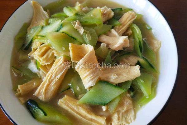 9508浏览 / 17收藏 健康功效 腐竹:抗氧化、抗癌防癌、促进生育 食材用料 青瓜 1根 耗油 少许 盐 少许 蒜子 少许 青瓜炒腐竹的做法1.腐竹提前冷水泡半小时,青瓜切成菱形2.热锅下油,放蒜子,出味放入切好的青瓜,炒8成熟乘出3.下油,蒜子,放泡好的腐竹,再放少许水翻炒下4.腐竹快熟时放入青瓜翻炒下放少许耗油,盐5.成品 本菜谱由上传...