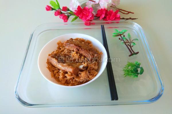 125125浏览 / 130收藏 食材用料 五常大米 200克 猪排骨 5块 葱姜蒜 适量 美极鲜酱油 适量 炸肉酱 1勺 酱香排骨饭的做法1.猪排骨五块冷水下锅,加入几粒花椒,开锅捞出来。2.过凉洗去浮沫。3.五常大米一缸一百克,看人定,我用两缸。4.洗一下倒掉水。5.葱姜蒜切好备用。6.开火烧热。7.倒入适量花生油,倒入葱姜蒜。8.炒制变黄捞出来。9.留底油。10.放入猪排骨翻炒。11.加入适量美极鲜酱油。12.加入一勺肉炸酱。13.准备一碗水。14.排骨倒入电饭煲,把一碗水倒入锅中烧开。15.在把锅中的水倒入电饭煲。16.平时水位是2,现在的水位要到3才会好吃。17.搅拌均匀蒸熟了...
