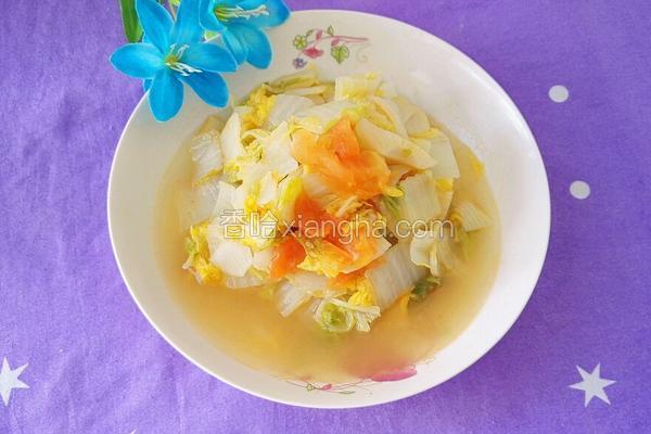 24663浏览 / 56收藏 健康功效 西红柿:活血化瘀 白菜:活血化瘀 食材用料 盐 适量 水 适量 植物油 适量 西红柿炒白菜的做法1.准备好食材2.将白菜切段洗净3.西红柿削皮切成片4.锅中倒入适量植物油,油烧至七分熟,倒入西红柿5.将西红柿进行翻炒6.当西红柿翻炒软后,倒入沥干水的白菜7.一同翻炒8.加入适量水9.当白菜成熟后,加入适量盐10.入味后即可关火11.盛入盘中12.西红柿炒白菜就制作好了~13.成品图 小贴士除掉西红柿的皮,可用开水烫一下。 本菜谱由上传...