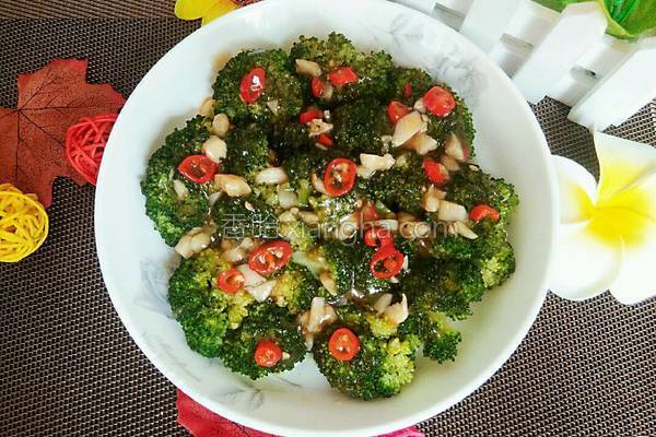 420825浏览 / 131收藏 健康功效 西兰花:活血化瘀 食材用料 小米椒 2个 蒜子 2粒 盐 适量 蒸鱼豉油 适量 鸡精 适量 西兰花的做法1.西兰花冲洗后切成小朵,用盐水泡十分钟后再清洗干净。2.摆入盘中3.蒸锅先烧水。4.水烧开后,再放入西兰花蒸8分钟后端出待用。5.利用蒸西兰花的时间,准备2个小米椒和2个大蒜粒洗净。6.将小米椒切圈,大蒜子切末。7.再取一个碗加入蚝油,蒸鱼豉油,鸡精,盐各适量。8.再加入适量水淀粉(淀粉+水调匀),搅拌均匀化开调料。9.起锅热油,将蒜子爆至微微泛黄。10.再加入小米椒翻炒几下就好。11.再加入水淀粉烧至起泡泡就关火。12.将烧好的调料汁浇在...