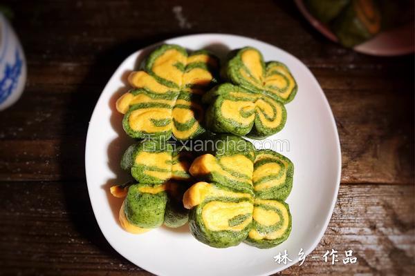 145845浏览 / 51收藏 食材用料 南瓜泥 1小碗 菠菜泥 1小碗 酵母 3克 盐 适量 蝴蝶馒头的做法1.把面粉和酵母分别加入两种菜泥中,再加上盐揉成光滑面团,密封发酵至两倍大2.把发酵好的面团揉搓排气,再擀成面皮3.把两个面皮叠放一起,再擀成面皮4.再卷成半指宽的卷,如图5.再切成2厘米宽的段6.再拿两块面段,背靠背,用筷子在中间用力夹紧7.依次做完静置15分钟,二次发酵8.放入开水锅中蒸15分钟即可9.成品图 小贴士两种面团软硬适中要一致,两款面皮要擀成厚薄度一样的,我就没有把握好效果差远了。 本菜谱由上传...
