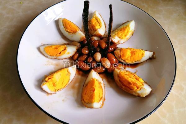 20684浏览 / 16收藏 健康功效 鸡蛋:润燥 桂皮:散瘀消肿 芝麻油:抗氧化、抗癌防癌、促进生育 食材用料 盐 适量 生抽 适量 老抽 适量 清水 适量 酸梅酱 1勺 虎皮卤蛋的做法1.鸡蛋煮10分钟2.将煮好的鸡蛋放入冷水中3.花生米泡水30分钟4.鸡蛋去壳5.将鸡蛋四面各划一刀6.蒜切片7.锅中入油8.放入鸡蛋煎至金黄9.将鸡蛋捞出10.锅中剩油放入蒜头爆香11.放入桂皮12.放入一勺酸梅酱13.倒入少许清水14.撒入少许盐15.倒入少许生抽16.倒入少许老抽17.放入少许冰糖18.倒入少许芝麻油19.煮沸后放入鸡蛋20.放入花生米21.小火焖30分钟至收汁22.将鸡蛋切开摆盘...