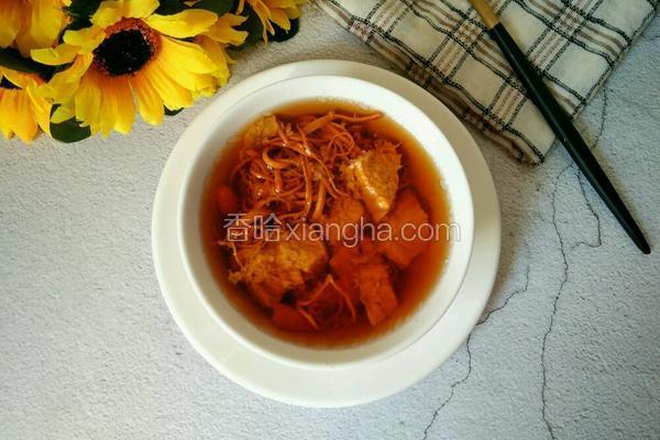 19260浏览 / 71收藏 健康功效 虫草花:补虚 食材用料 猪梅肉 1块 盐 少许 清水 1小碗 虫草花枸杞瘦肉汤的做法1.虫草花适量,枸杞少许,猪梅肉1块2.虫草花提前用水泡泡,再清洗干净3.猪梅肉冲洗干净4.改刀切成块状5.枸杞虫草花先放入炖盅里6.接着把切好的梅肉块放入7.加入一小碗的清水8.少许的盐9.盖上盅盖10.放入隔水炖锅里,预约两个小时即可11.时间到点后就可以品尝了 小贴士虫草花也可同其实肉类一同炖煮,味道非常的鲜美 本菜谱由上传...