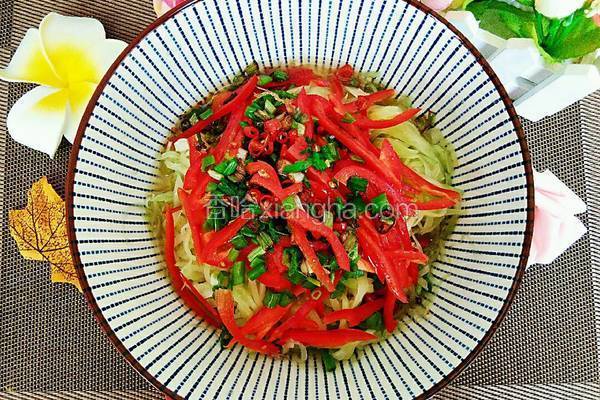 408152浏览 / 66收藏 食材用料 红灯笼椒 1个 小米椒 2个 盐 适量 葱油莴笋丝的做法1.先准备食材2.莴苣去皮,都全部清洗干净3.莴苣和红灯笼椒切丝,葱切葱花,小米椒切圆。4.莴笋丝加盐拌均匀腌10分钟5.然后抓出腌出的水并控掉,上面铺上红椒丝,撒上一点葱花。6.起锅热油加入葱花和小米椒,烧出葱香味,葱和小米椒有点焦黄时,捞掉不要。葱油就做好了。7.将热葱油淋入上面即可。8.拌均匀就可以享用了,清脆爽口,香葱味十足,很好吃! 小贴士①不吃辣的可不用小米椒②莴笋丝尽量切细点,越细越好吃。 本菜谱由上传...