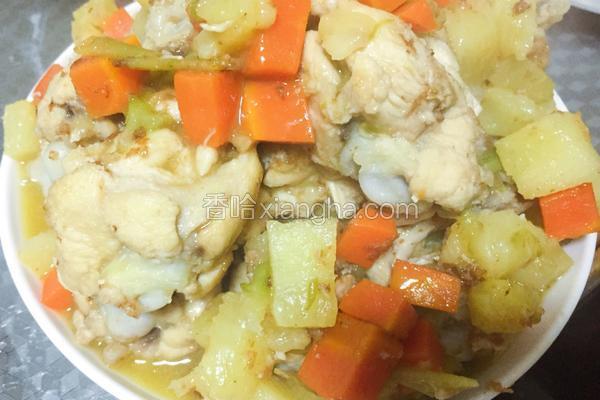 9854浏览 / 8收藏 健康功效 鸡腿:富含烟酸 菠萝:活血化瘀 黄油:活血化瘀 食材用料 盐 少许 菠萝鸡腿的做法1.鸡腿洗净,锅内烧开水,将洗净的的鸡腿倒入,焯血水去腥2.焯好的鸡腿捞出备用3.菠萝切小丁,胡萝卜切丁,青椒切块(胡萝卜青椒忘记拍照了)4.菠萝皮盖在焯好的鸡腿上5.热锅加黄油6.黄油软化后下鸡腿翻炒7.鸡腿炒至表面金黄下入胡萝卜青椒(这一步最好直下胡萝卜,因为第一次做,忘记炖鸡腿要有一段时间,提前下青椒的话煮烂了就没有颜色了,稍后看成品就知道了)8.下菠萝丁9.加适量水,小火慢炖,鸡腿熟透后,大火收汁,出锅前加少许盐调味10.盛出装盘即可 本菜谱由上传...