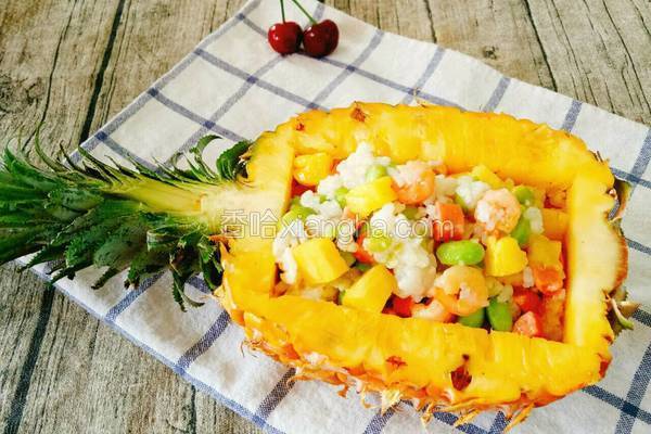 7722浏览 / 24收藏 健康功效 菠萝:活血化瘀 米饭:活血化瘀 胡萝卜:活血化瘀 食材用料 火腿肠 1根 马苏里拉芝士 50克 盐 少许 咖喱粉 少许 菠萝焗饭的做法1.用水冲洗菠萝表皮,擦干。竖着从三分之一处切开。2.掏出果肉,浸泡盐水二十分钟,捞出沥干。胡萝卜、洋葱、黄瓜、火腿肠以及菠萝肉切成丁。3.锅中放油,倒入洋葱丁、火腿丁炒香,接着倒入胡萝卜丁、黄瓜丁、菠萝丁,翻炒均匀,倒入米饭,继续翻炒,最后加少许咖喱粉和盐。4.翻炒均匀后装入菠萝容器中。菠萝炒饭上铺一层马苏里拉芝士。5.放入预热好的烤箱,上下火200度,中层烘烤10分钟左右,马苏里拉融化即可。 小贴士用隔夜米饭口感更...