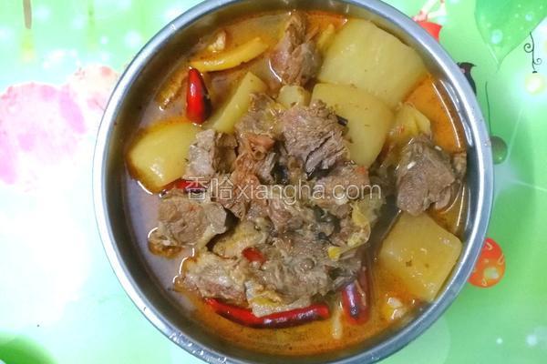 5149浏览 / 12收藏 健康功效 白萝卜:活血化瘀 食材用料 姜蒜 适量 花椒八角 适量 陈皮山楂 少许 小米椒 适量 生油老抽耗油 一味碟 萝卜炖牛腩的做法1.配齐调料,牛腩过水,生抽老抽耗油一起2.萝卜切块备用3.配料热油爆香4.加牛腩大火翻炒5.翻炒均匀倒入酱油继续翻炒6.加盖过牛腩的水,大火烧开7.加入萝卜,炖至萝卜透明熟透8.装盆上桌,配上腐乳辣椒酱,好吃到没朋友 小贴士冷水下葱姜,料酒,牛腩煮开,晾干。炖萝卜可以换高压锅炖比较快。 本菜谱由上传...