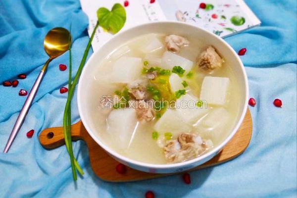 360792浏览 / 1609收藏 健康功效 排骨:润燥 食材用料 盐 少许 萝卜排骨汤的做法1.食材如下图2.排骨洗干净放冷水锅中焯水3.萝卜去皮切块4.生姜洗净拍破,大葱洗净切段。5.排骨焯水至水沸6.捞出排骨用温水冲掉浮末7.排骨生姜大葱放入砂锅中8.注入适量的清水,大火烧开后转小火炖一个小时。9.放入萝卜10.大火烧开转小火炖半个小时11.放少许盐12.搅拌均匀即可13.出锅装碗14.撒上葱花 本菜谱由上传...