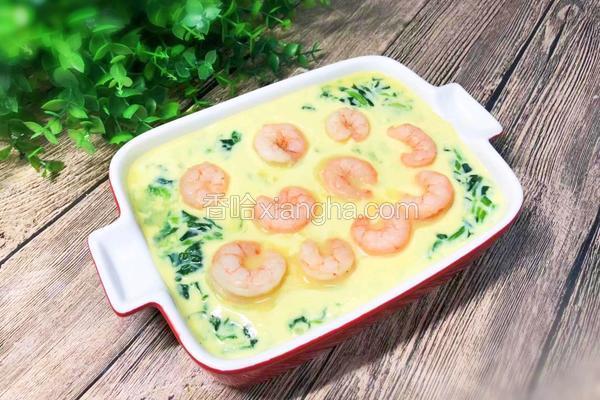 11266浏览 / 69收藏 健康功效 鸡蛋:润燥 菠菜:平肝 食材用料 温水 适量 盐 一勺 生抽 一勺 菠菜虾仁蛋羹的做法1.成品图2.准备所需食材。3.虾仁放淀粉和料酒腌制洗净。4.菠菜焯水去除草酸。5.挤去水份切碎备用。6.鸡蛋打入碗中放适量盐。7.加适量水搅匀。8.撇去浮沫。9.切碎的菠菜放进蛋液里搅匀。10.盖上保鲜膜,用牙签扎孔。11.水开上锅蒸八分钟左右,表面凝固后放虾仁,再蒸三四分钟左右。12.蒸好取出放生抽。13.滴入香油,撒上葱花。14.营养美味的一盘很受家人喜欢。15.请品尝吧! 小贴士鸡蛋和水的比例最好是1:1.5,这样蒸出的鸡蛋软嫩合适,菠菜食用前一定要焯水。...