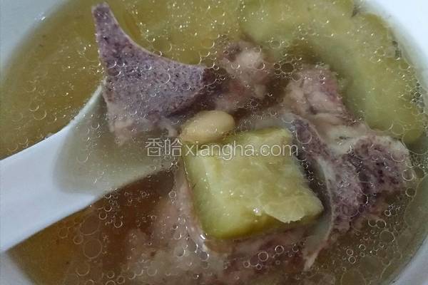 7196浏览 / 13收藏 健康功效 苦瓜:活血化瘀 黄豆:导滞 花生油:抗氧化、抗癌防癌、促进生育 食材用料 姜片 适量 盐 适量 苦瓜黄豆猪骨汤的做法1.提前浸泡黄豆2.准备一条新鲜的苦瓜,洗净切成大块3.猪骨先焯水备用4.材料准备齐全,一起冷水下锅煲,放几片姜进去5.煲一个小时左右6.作品完成 本菜谱由上传...