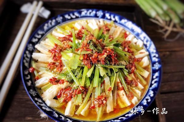 248186浏览 / 125收藏 健康功效 豆腐干:抗氧化、抗癌防癌、促进生育 芹菜:平肝 胡椒粉:补血、护齿、保护骨骼 食材用料 蒜蓉剁椒 30克 生抽 5克 橄榄油 适量 芹菜豆腐干的做法1.豆腐干洗净,切成条状2.摆入盘中3.芹菜摘洗干净,切成段4.放入豆腐干上面5.蒜蓉剁椒放入碗中6.加入蚝油、生抽、胡椒粉和少许开水,拌匀7.倒入豆腐干和芹菜上面8.放入开水锅中,蒸8-10分钟9.取出,淋入橄榄油即可10.成品图 小贴士蒜蓉剁椒是我自己做的,放入豆腐干里可以不加盐,如果喜欢辣味的就加点小米辣会更好吃,。 本菜谱由上传...