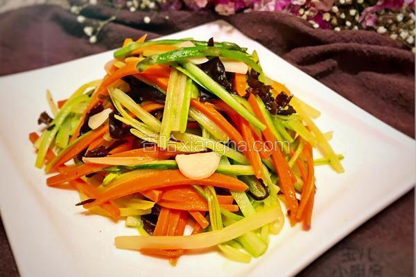 255915浏览 / 206收藏 健康功效 芦笋:活血化瘀 胡萝卜:活血化瘀 芹菜:平肝 食材用料 黑木耳(泡发好) 100克 盐 2.5克 芦笋素什锦的做法1.主要食材:芦笋去掉根部老杆和外皮,胡萝卜去皮,木耳泡发好,芹菜去叶洗净。2.芦笋、胡萝卜和芹菜切成差不长短和大小的丝。3.蒜切片、木耳切丝。4.锅里烧水,水开后放入1小勺油。5.下入芦笋、芹菜和胡萝卜丝焯水断生。6.捞出过凉水。7.沥一下水分。8.锅里放油,5成热下蒜片爆香。9.下木耳炒一下。10.放入焯好的菜丝。11.翻炒均匀,放入盐和糖调味即可。12.起锅装盘,上桌。 小贴士1、焯水时先滴一些油,是让菜护色。2、喜欢鸡精或味...