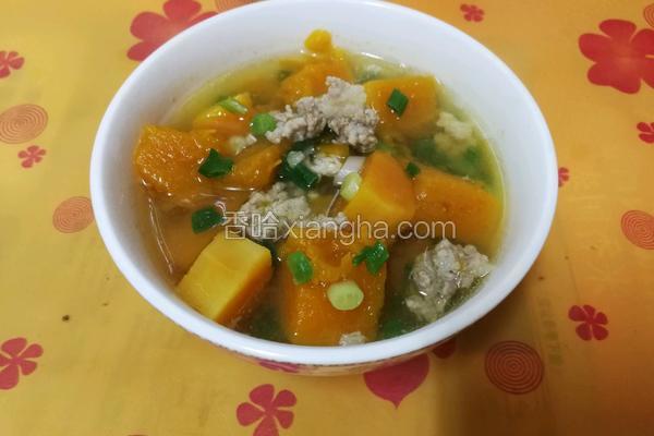 8987浏览 / 12收藏 健康功效 南瓜:活血化瘀 猪肉:润燥 食材用料 盐 3克 生粉 1克 姜粉 1克 清水 食饭碗(2碗半) 肉末南瓜汤的做法1.成品图2.食材,南瓜,猪肉,葱花,南瓜去皮,切块备用,肉洗干净,剁碎加进调料、盐、生粉、姜粉、备用,小葱洗干净切葱花备用。3.锅注入清水烧热。4.倒入南瓜煮开。5.倒入肉末煮开6.用筷子把肉搅拌均匀7.加进少许盐8.最后加进葱花焖1分钟,南瓜汤好了关火出锅。9.成品图10.成品图 小贴士①南瓜比较容易熟,火候要把握好,②关于口味根据自家口味调配。 本菜谱由上传...
