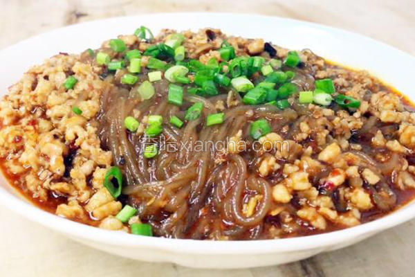 5751浏览 / 17收藏 食材用料 肉末 3两 粉条 1把 盐 半勺 香辣酱 2勺 味极鲜 少许 肉末粉条的做法1.这是准备好的食材,粉条提前用来开水泡开2.蒜切末,姜切末,小葱切葱花,肉末中放入姜末,少许盐,味极鲜,料酒,淀粉拌匀腌制10分钟3.起锅烧油,爆笑蒜末,放两勺香辣酱炒出红油4.倒入肉末炒至颗颗分离5.下入粉条翻炒均匀,加少许盐调味6.倒入半碗水大火煮开后持续大火收汁7.盛入盘中,撒上葱花,就大功告成 小贴士1粉条要提前泡好,不然炒不熟2肉末至少腌制10分钟以上,这样肉末才会更鲜美 本菜谱由上传...